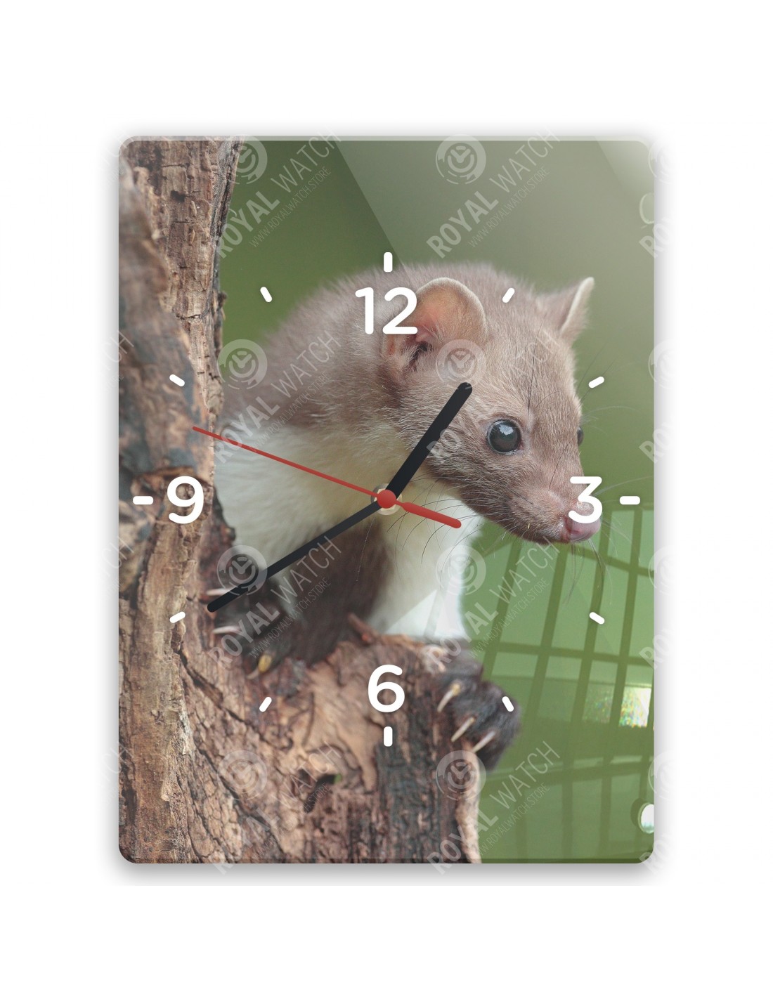 Die Uhr aus Acryl hat folgende Abmessungen: ein Quadrat 28x28cm, einen Kreis mit einem Durchmesser von 30cm, ein Rechteck 20x30cm und eine Dicke von 6mm.
