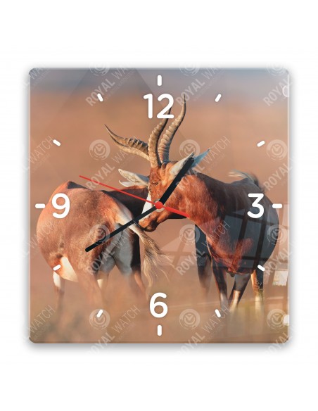 Die Uhr aus Acryl hat folgende Abmessungen: ein Quadrat 28x28cm, einen Kreis mit einem Durchmesser von 30cm, ein Rechteck 20x30cm und eine Dicke von 6mm.