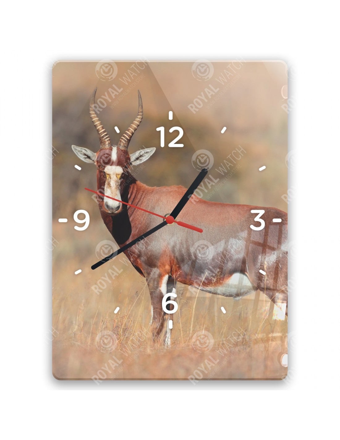 Die Uhr aus Acryl hat folgende Abmessungen: ein Quadrat 28x28cm, einen Kreis mit einem Durchmesser von 30cm, ein Rechteck 20x30cm und eine Dicke von 6mm.