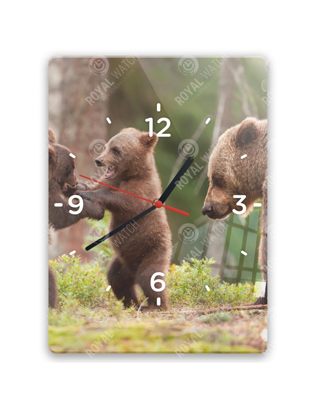 Die Uhr aus Acryl hat folgende Abmessungen: ein Quadrat 28x28cm, einen Kreis mit einem Durchmesser von 30cm, ein Rechteck 20x30cm und eine Dicke von 6mm.
