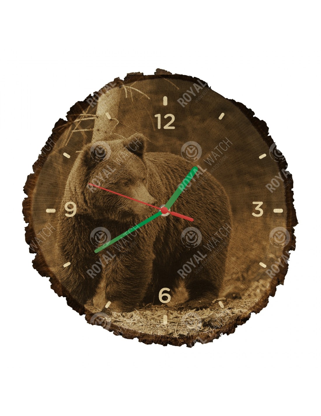 Das Gewicht der Uhr beträgt 700-1200 g (abhängig von der Größe des Querschnitts). Der Druck auf der Uhr ist in hoher Auflösung. Auf Anfrage stellen wir für Sie eine Uhr mit einem Motiv Ihrer Wahl her. Bei uns haben Sie die einmalige Gelegenheit, die Uhr mit Ihrem eigenen Firmenlogo zu unterdrücken.