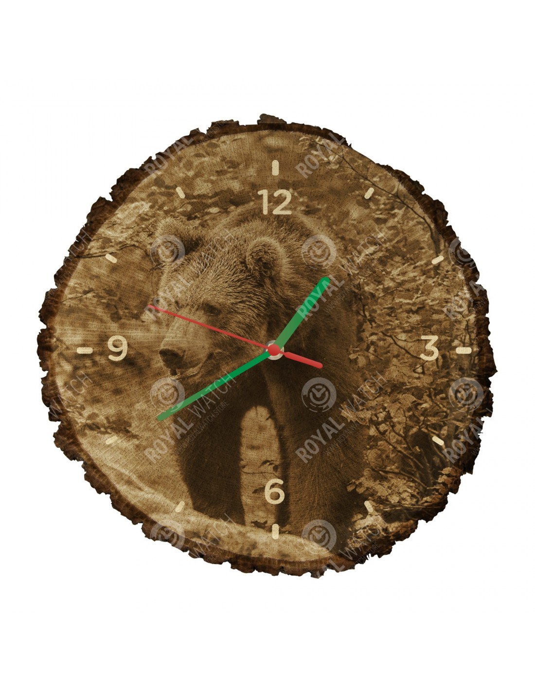 Das Gewicht der Uhr beträgt 700-1200 g (abhängig von der Größe des Querschnitts). Der Druck auf der Uhr ist in hoher Auflösung. Auf Anfrage stellen wir für Sie eine Uhr mit einem Motiv Ihrer Wahl her. Bei uns haben Sie die einmalige Gelegenheit, die Uhr mit Ihrem eigenen Firmenlogo zu unterdrücken.