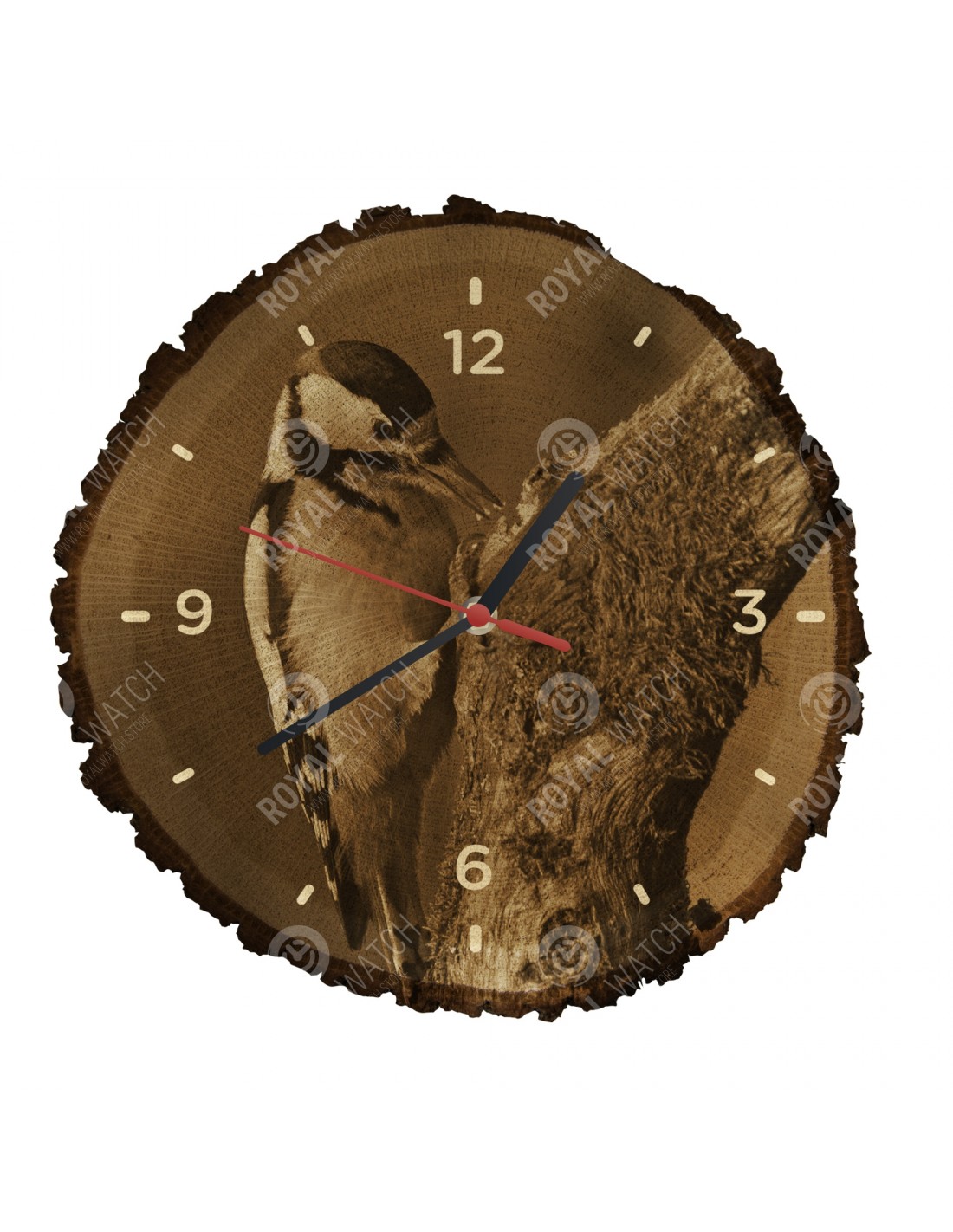 Das Gewicht der Uhr beträgt 700-1200 g (abhängig von der Größe des Querschnitts). Der Druck auf der Uhr ist in hoher Auflösung. Auf Anfrage stellen wir für Sie eine Uhr mit einem Motiv Ihrer Wahl her. Bei uns haben Sie die einmalige Gelegenheit, die Uhr mit Ihrem eigenen Firmenlogo zu unterdrücken.