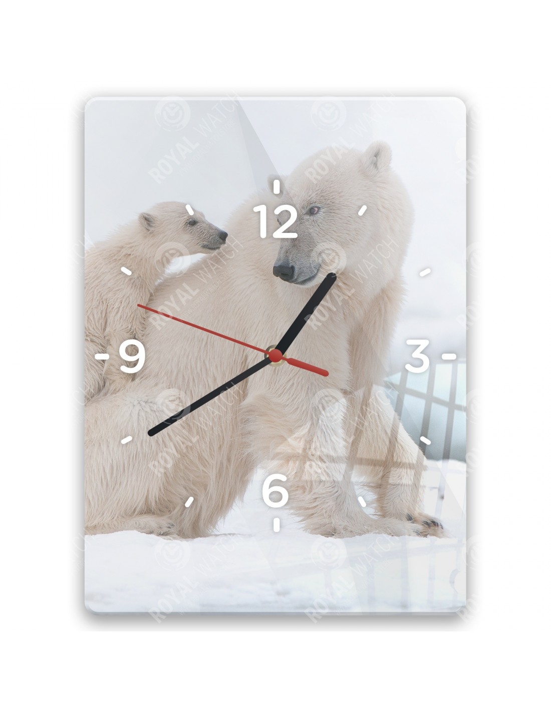Die Uhr aus Acryl hat folgende Abmessungen: ein Quadrat 28x28cm, einen Kreis mit einem Durchmesser von 30cm, ein Rechteck 20x30cm und eine Dicke von 6mm.