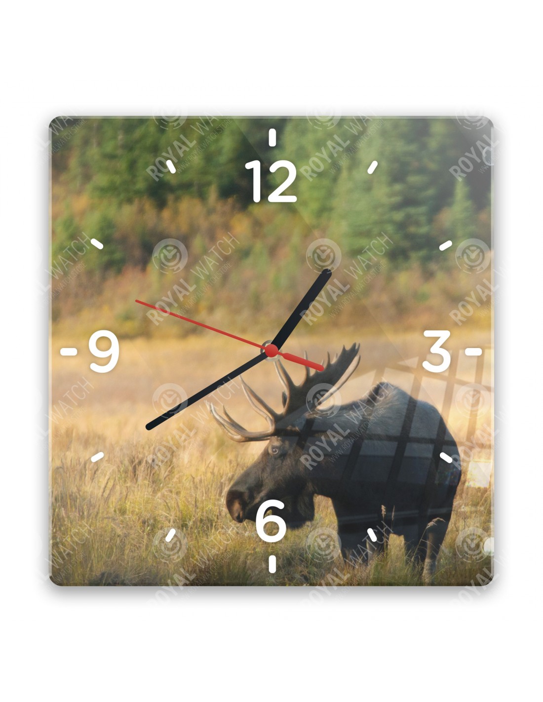 Die Uhr aus Acryl hat folgende Abmessungen: ein Quadrat 28x28cm, einen Kreis mit einem Durchmesser von 30cm, ein Rechteck 20x30cm und eine Dicke von 6mm.