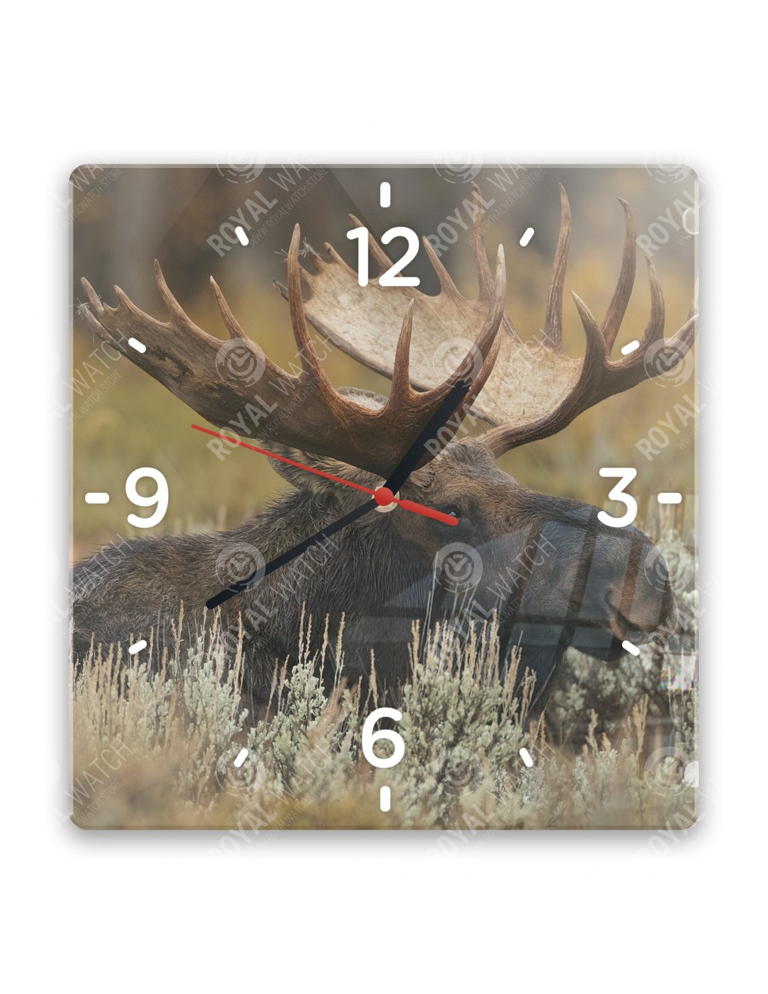 Die Uhr aus Acryl hat folgende Abmessungen: ein Quadrat 28x28cm, einen Kreis mit einem Durchmesser von 30cm, ein Rechteck 20x30cm und eine Dicke von 6mm.