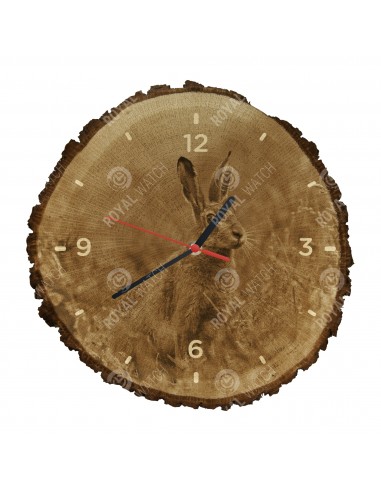Die Uhr besteht aus Eichenquerschnitt mit einem Durchmesser von 30cm (Abweichung 25% der Größe) und einer Dicke von 1cm. Da die Uhr aus einem rein natürlichen Material besteht, ist es möglich, dass die Uhr am Umfang Risse oder heruntergefallene Rinde aufweist (max. 30%).