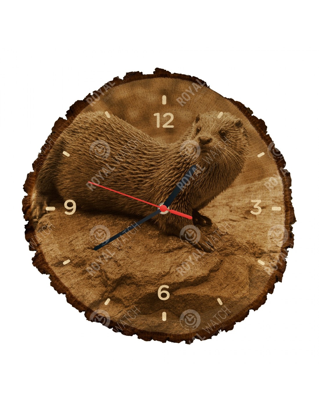 Das Gewicht der Uhr beträgt 700-1200 g (abhängig von der Größe des Querschnitts). Der Druck auf der Uhr ist in hoher Auflösung. Auf Anfrage stellen wir für Sie eine Uhr mit einem Motiv Ihrer Wahl her. Bei uns haben Sie die einmalige Gelegenheit, die Uhr mit Ihrem eigenen Firmenlogo zu unterdrücken.