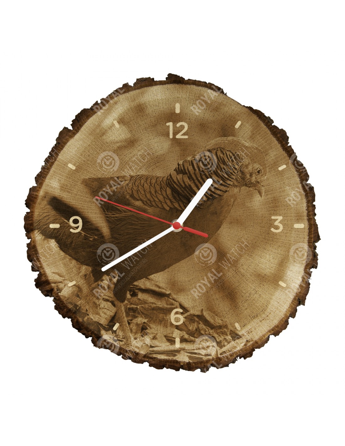 Das Gewicht der Uhr beträgt 700-1200g (abhängig von der Größe des Querschnitts). Der Druck auf der Uhr ist in hoher Auflösung. Auf Anfrage stellen wir für Sie eine Uhr mit einem Motiv Ihrer Wahl her. Bei uns haben Sie die einmalige Gelegenheit, die Uhr mit Ihrem eigenen Firmenlogo zu unterdrücken.