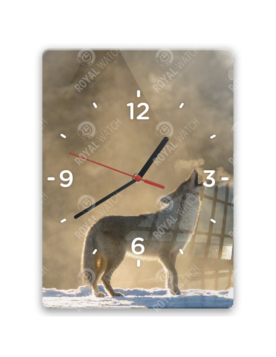 Die Uhr aus Acryl hat folgende Abmessungen: ein Quadrat 28x28cm, einen Kreis mit einem Durchmesser von 30cm, ein Rechteck 20x30cm und eine Dicke von 6mm.