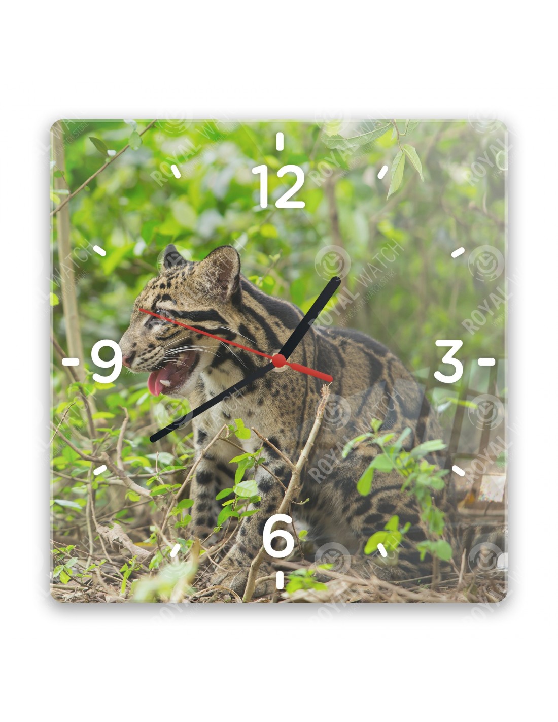 Die Uhr aus Acryl hat folgende Abmessungen: ein Quadrat 28x28cm, einen Kreis mit einem Durchmesser von 30cm, ein Rechteck 20x30cm und eine Dicke von 6mm.