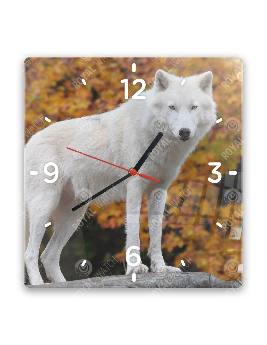 Die Uhr aus Acryl hat folgende Abmessungen: ein Quadrat 28x28cm, einen Kreis mit einem Durchmesser von 30cm, ein Rechteck 20x30cm und eine Dicke von 6mm.