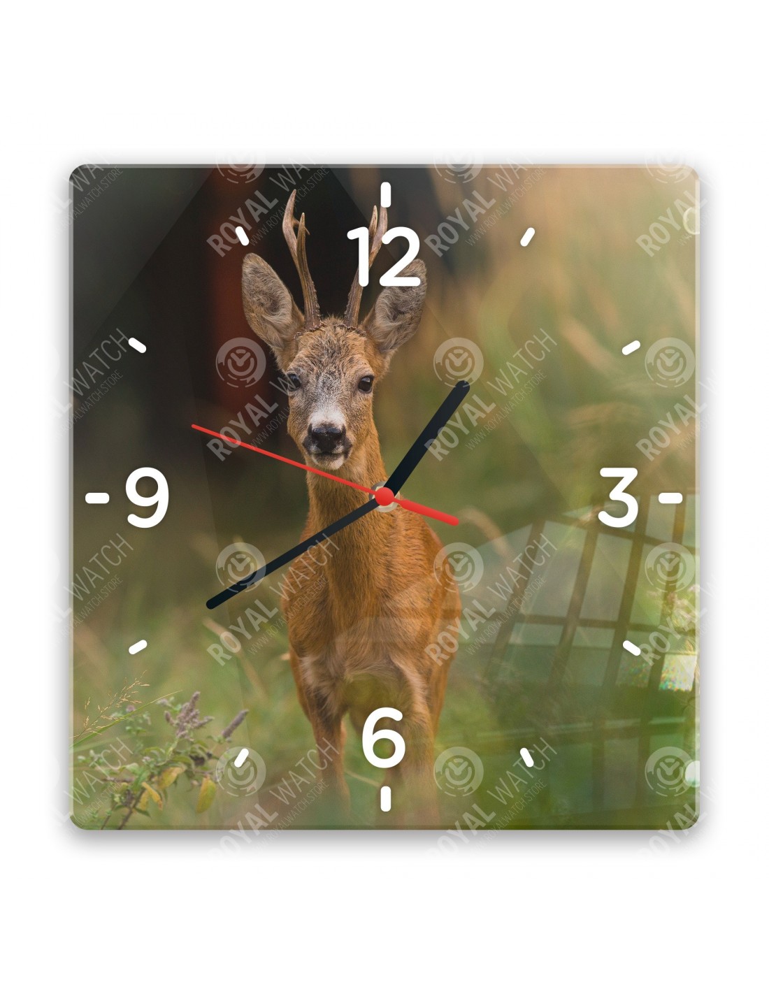 Die Uhr aus Acryl hat folgende Abmessungen: ein Quadrat 28x28cm, einen Kreis mit einem Durchmesser von 30cm, ein Rechteck 20x30cm und eine Dicke von 6mm.