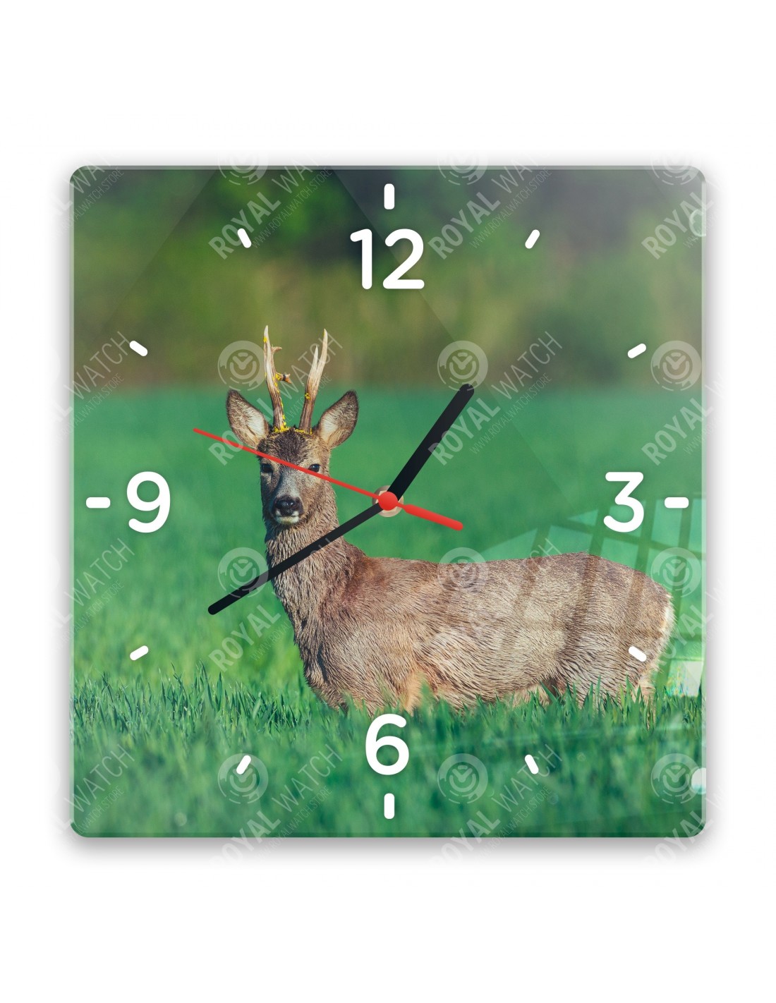 Die Uhr aus Acryl hat folgende Abmessungen: ein Quadrat 28x28cm, einen Kreis mit einem Durchmesser von 30cm, ein Rechteck 20x30cm und eine Dicke von 6mm.