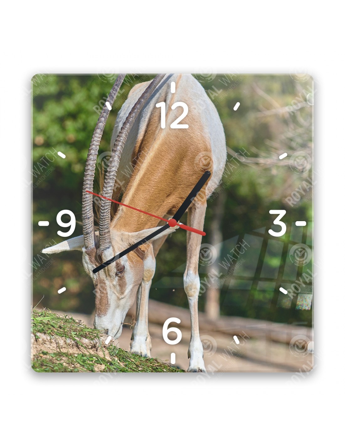 Die Uhr aus Acryl hat folgende Abmessungen: ein Quadrat 28x28cm, einen Kreis mit einem Durchmesser von 30cm, ein Rechteck 20x30cm und eine Dicke von 6mm.