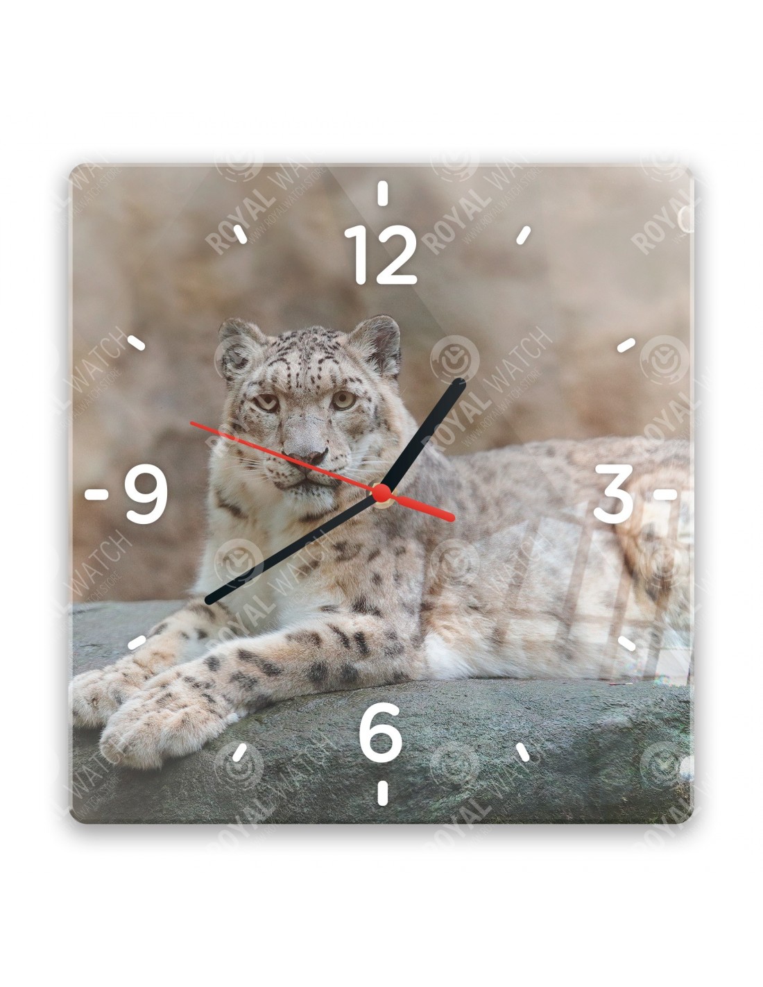 Die Uhr aus Acryl hat folgende Abmessungen: ein Quadrat 28x28cm, einen Kreis mit einem Durchmesser von 30cm, ein Rechteck 20x30cm und eine Dicke von 6mm.