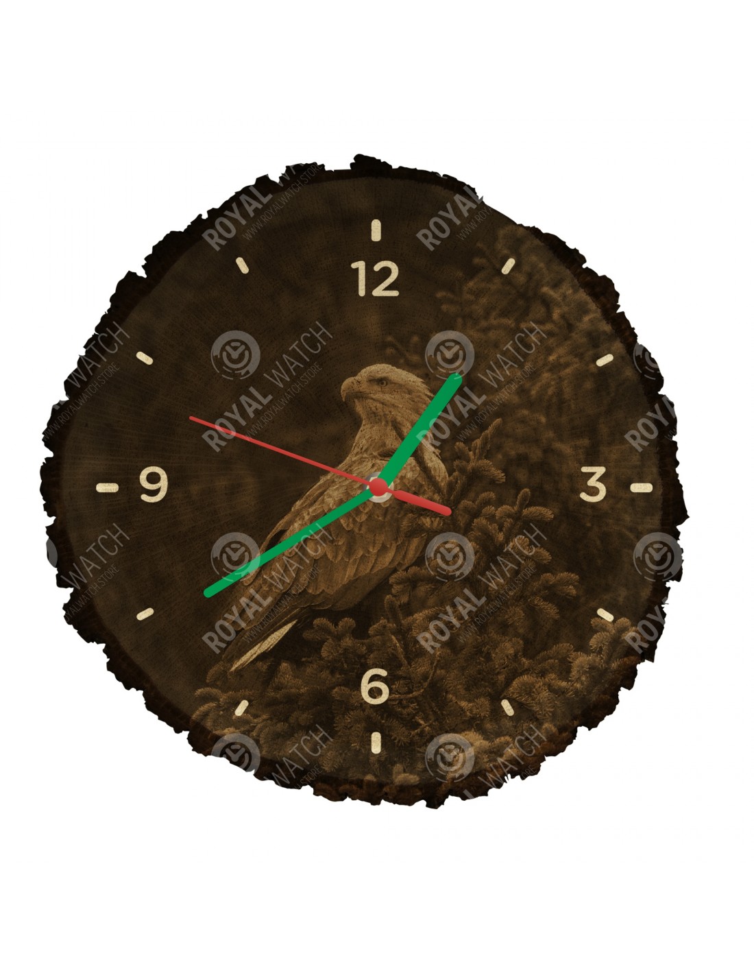 Das Gewicht der Uhr beträgt 700-1200g (abhängig von der Größe des Querschnitts). Der Druck auf der Uhr ist in hoher Auflösung. Auf Anfrage stellen wir für Sie eine Uhr mit einem Motiv Ihrer Wahl her. Bei uns haben Sie die einmalige Gelegenheit, die Uhr mit Ihrem eigenen Firmenlogo zu unterdrücken.