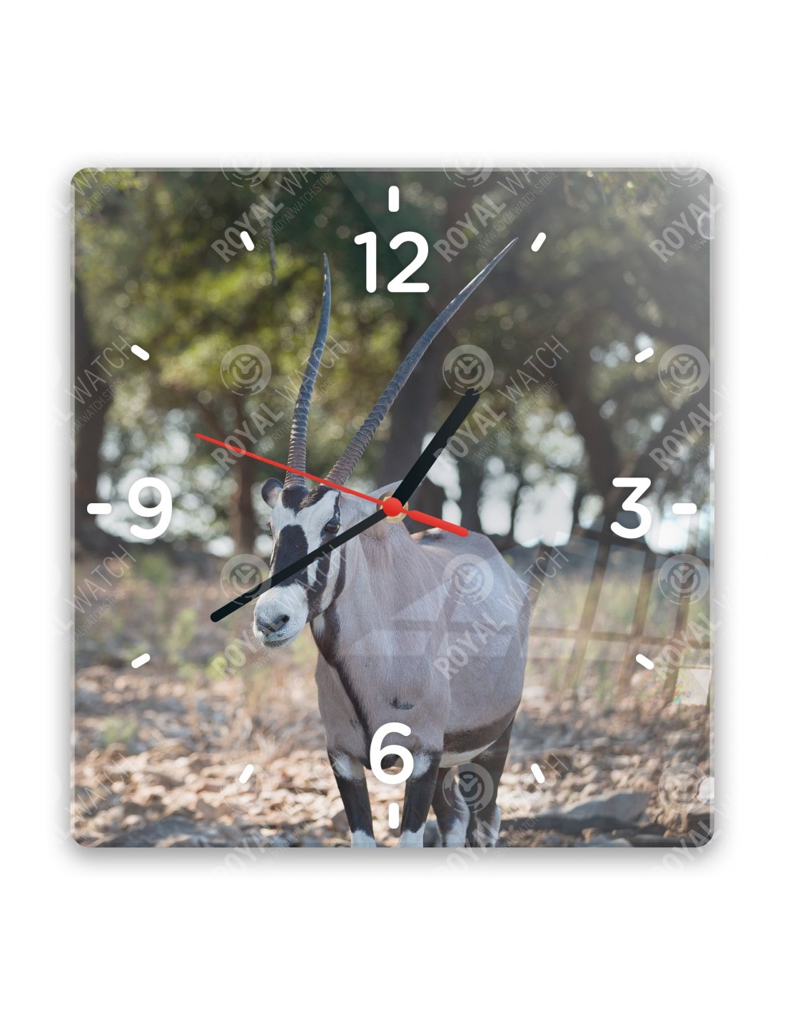 Die Uhr aus Acryl hat folgende Abmessungen: ein Quadrat 28x28cm, einen Kreis mit einem Durchmesser von 30cm, ein Rechteck 20x30cm und eine Dicke von 6mm.
