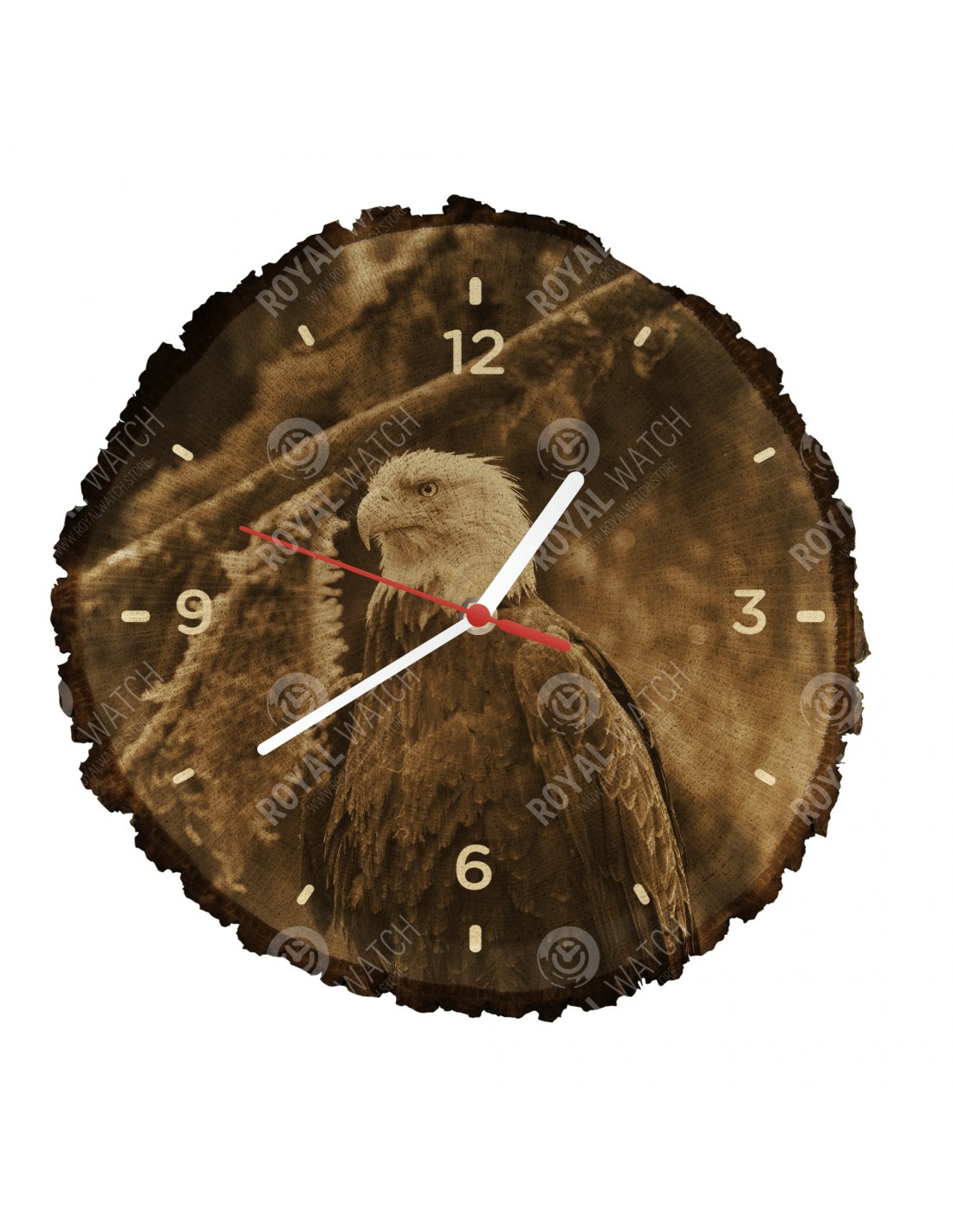 The clock is made of oak cross-section with a diameter of 30cm (deviation of 25% size) and with a thickness of 1cm. Because the clock is made of a purely natural material, it is possible that there are cracks or fallen bark on the clock's circumference (max. to 30%).