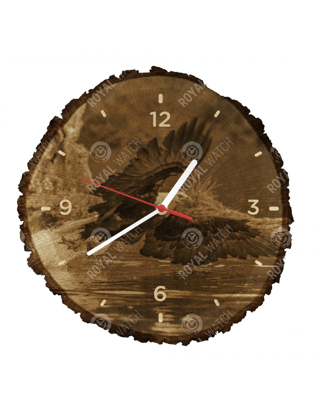 The clock is made of oak cross-section with a diameter of 30cm (deviation of 25% size) and with a thickness of 1cm. Because the clock is made of a purely natural material, it is possible that there are cracks or fallen bark on the clock's circumference (max. to 30%).