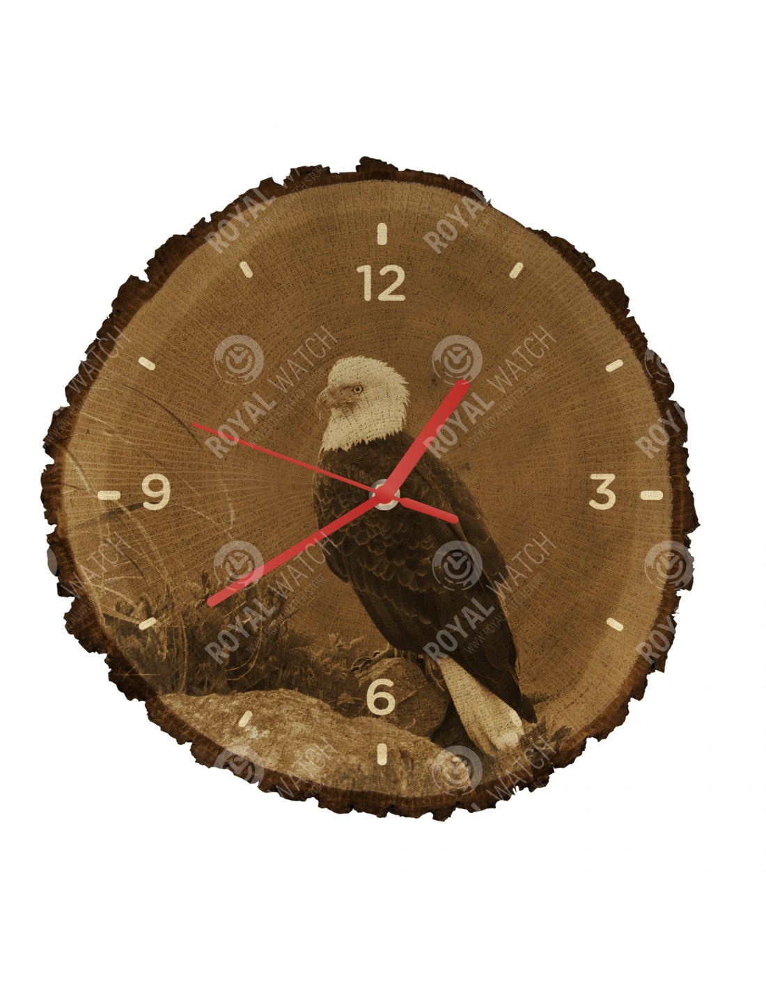 The clock is made of oak cross-section with a diameter of 30cm (deviation of 25% size) and with a thickness of 1cm. Because the clock is made of a purely natural material, it is possible that there are cracks or fallen bark on the clock's circumference (max. to 30%).