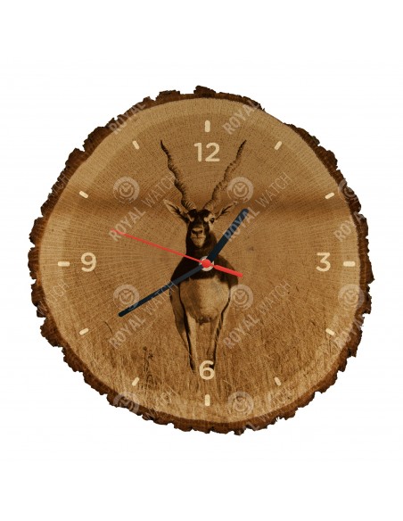 The clock is made of oak cross-section with a diameter of 30cm (deviation of 25% size) and with a thickness of 1cm. Because the clock is made of a purely natural material, it is possible that there are cracks or fallen bark on the clock's circumference (max. to 30%).