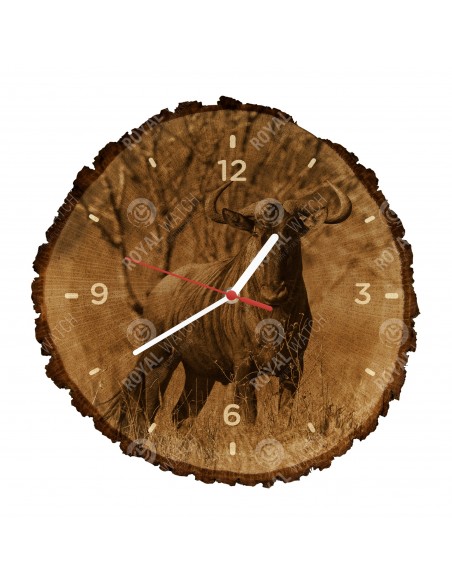 The clock is made of oak cross-section with a diameter of 30cm (deviation of 25% size) and with a thickness of 1cm. Because the clock is made of a purely natural material, it is possible that there are cracks or fallen bark on the clock's circumference (max. to 30%).