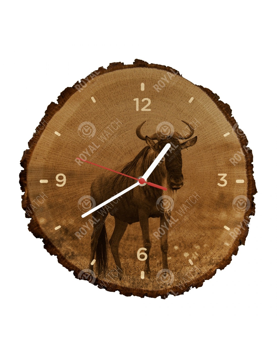 The clock is made of oak cross-section with a diameter of 30cm (deviation of 25% size) and with a thickness of 1cm. Because the clock is made of a purely natural material, it is possible that there are cracks or fallen bark on the clock's circumference (max. to 30%).