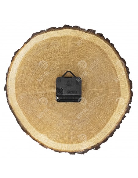 The clock is made of oak cross-section with a diameter of 30cm (deviation of 25% size) and with a thickness of 1cm. Because the clock is made of a purely natural material, it is possible that there are cracks or fallen bark on the clock's circumference (max. to 30%).