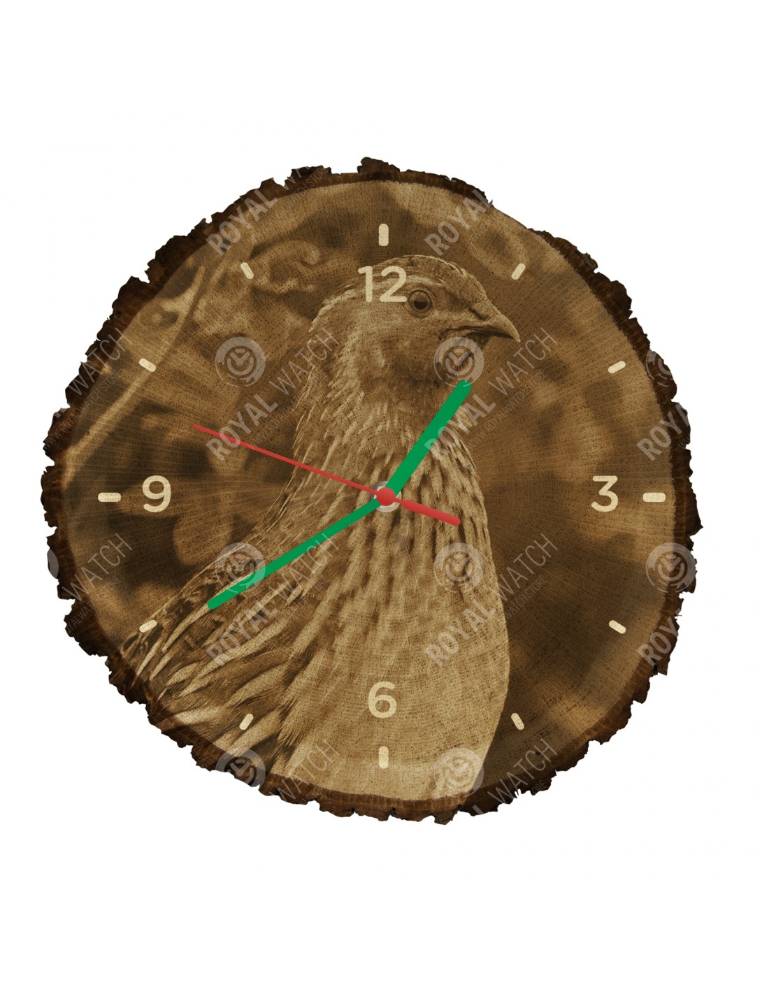 The clock is made of oak cross-section with a diameter of 30cm (deviation of 25% size) and with a thickness of 1cm. Because the clock is made of a purely natural material, it is possible that there are cracks or fallen bark on the clock's circumference (max. to 30%).