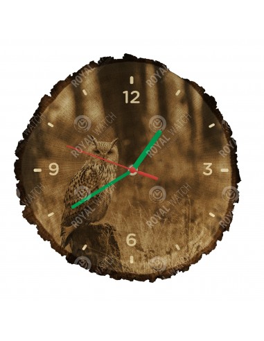 The clock is made of oak cross-section with a diameter of 30cm (deviation of 25% size) and with a thickness of 1cm. Because the clock is made of a purely natural material, it is possible that there are cracks or fallen bark on the clock's circumference (max. to 30%).