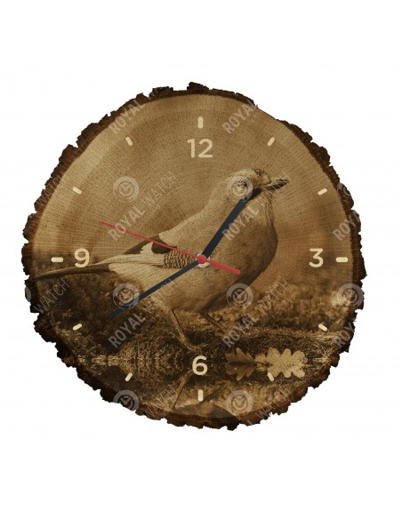 The clock is made of oak cross-section with a diameter of 30cm (deviation of 25% size) and with a thickness of 1cm. Because the clock is made of a purely natural material, it is possible that there are cracks or fallen bark on the clock's circumference (max. to 30%).
