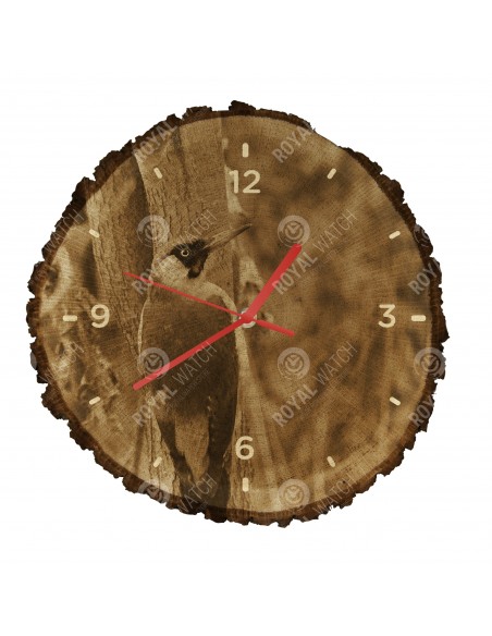 The clock is made of oak cross-section with a diameter of 30cm (deviation of 25% size) and with a thickness of 1cm. Because the clock is made of a purely natural material, it is possible that there are cracks or fallen bark on the clock's circumference (max. to 30%).