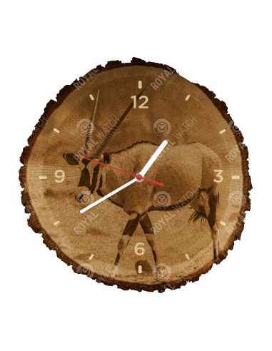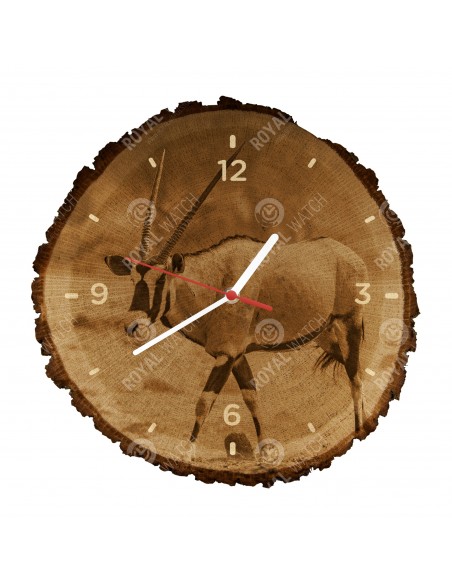 The clock is made of oak cross-section with a diameter of 30cm (deviation of 25% size) and with a thickness of 1cm. Because the clock is made of a purely natural material, it is possible that there are cracks or fallen bark on the clock's circumference (max. to 30%).