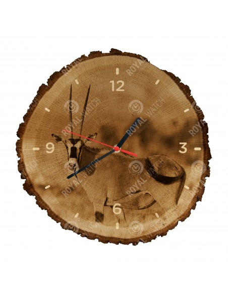 The clock is made of oak cross-section with a diameter of 30cm (deviation of 25% size) and with a thickness of 1cm. Because the clock is made of a purely natural material, it is possible that there are cracks or fallen bark on the clock's circumference (max. to 30%).