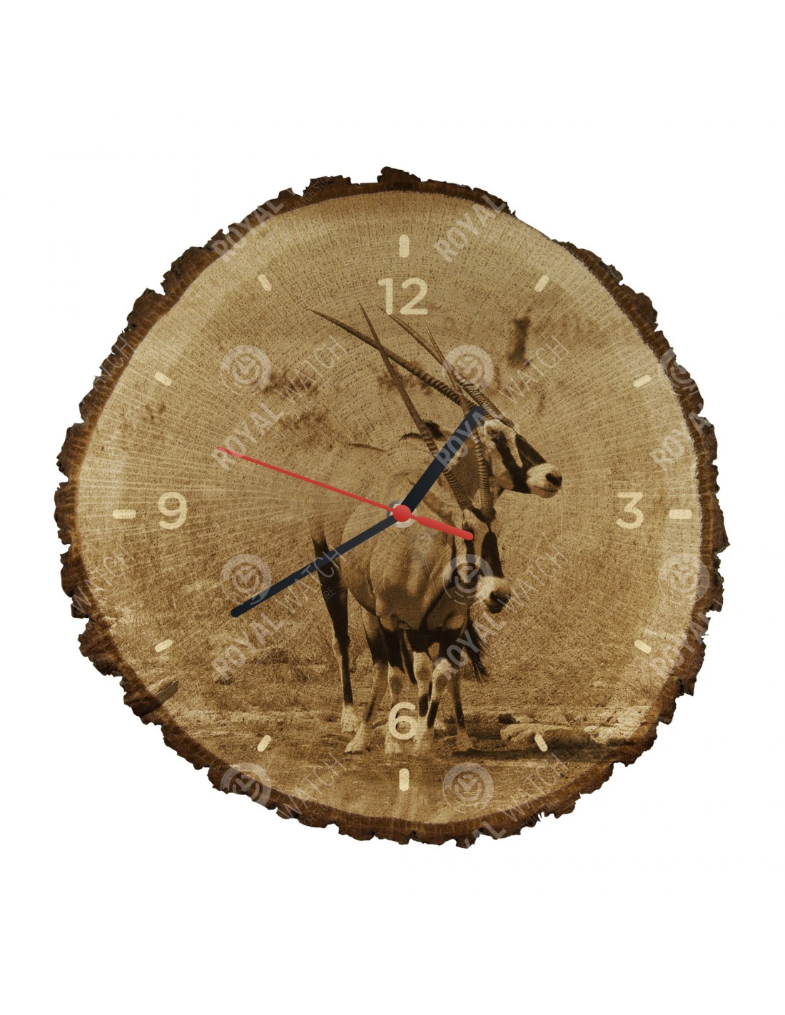 The clock is made of oak cross-section with a diameter of 30cm (deviation of 25% size) and with a thickness of 1cm. Because the clock is made of a purely natural material, it is possible that there are cracks or fallen bark on the clock's circumference (max. to 30%).