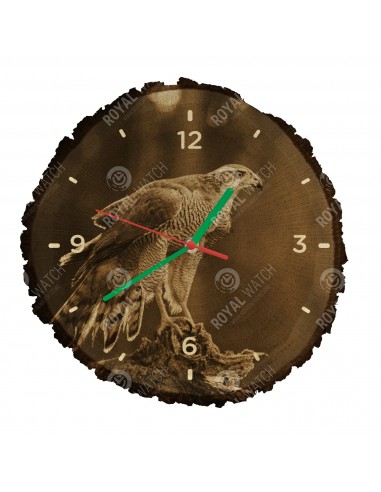 The clock is made of oak cross-section with a diameter of 30cm (deviation of 25% size) and with a thickness of 1cm. Because the clock is made of a purely natural material, it is possible that there are cracks or fallen bark on the clock's circumference (max. to 30%).