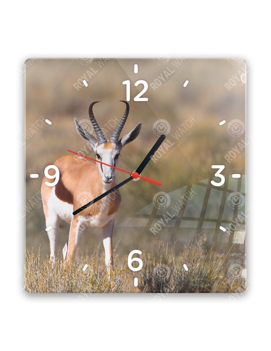 The clock made of acrylic has a square size of 28x28cm, a circle with a diameter of 30cm, a rectangle size of 20x30cm and a thickness of 6mm.