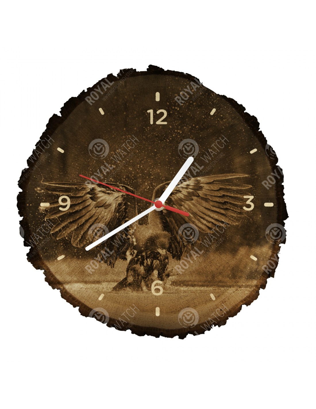 The clock is made of oak cross-section with a diameter of 30cm (deviation of 25% size) and with a thickness of 1cm. Because the clock is made of a purely natural material, it is possible that there are cracks or fallen bark on the clock's circumference (max. to 30%).