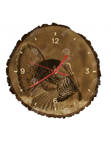 The clock is made of oak cross-section with a diameter of 30cm (deviation of 25% size) and with a thickness of 1cm. Because the clock is made of a purely natural material, it is possible that there are cracks or fallen bark on the clock's circumference (max. to 30%).