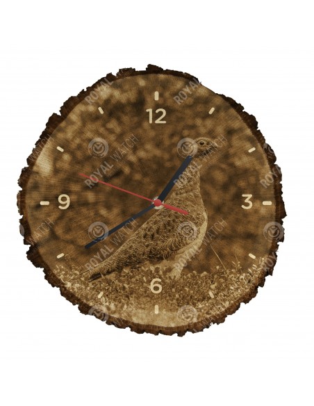 The clock is made of oak cross-section with a diameter of 30cm (deviation of 25% size) and with a thickness of 1cm. Because the clock is made of a purely natural material, it is possible that there are cracks or fallen bark on the clock's circumference (max. to 30%).