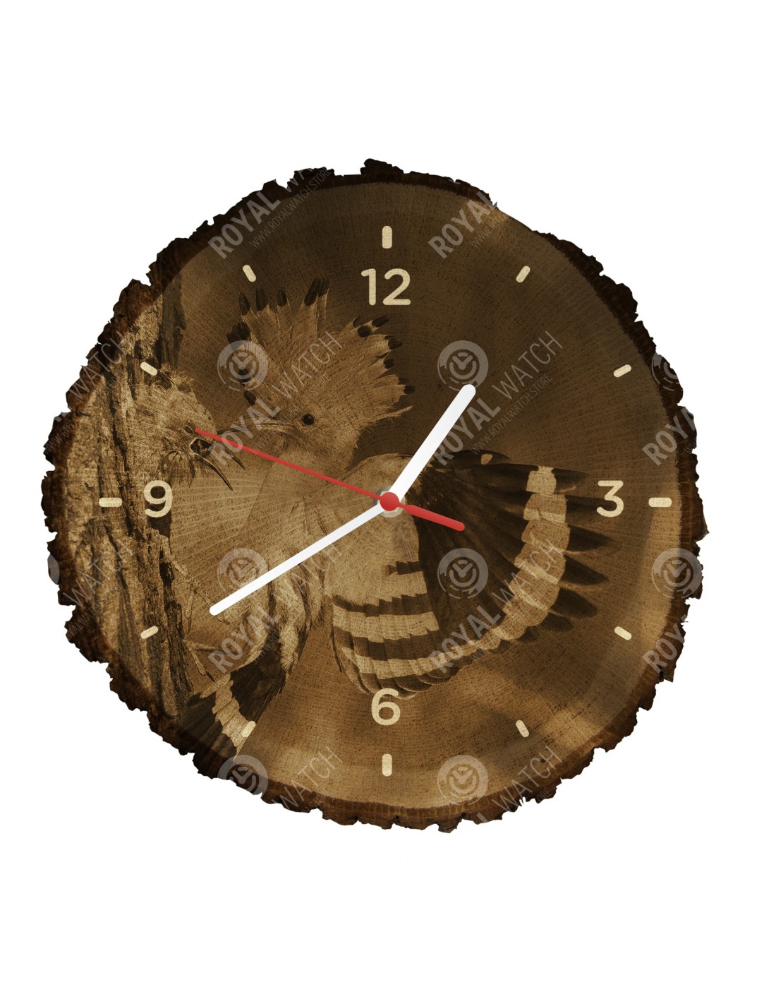 Zegar wykonany jest z dębowego przekroju o średnicy 30 cm (odchylenie 25% wielkości) i grubości 1 cm. Ponieważ zegar jest wykonany z czysto naturalnego materiału, możliwe jest, że zegar ma pęknięcia lub opadłą korę na obwodzie (maks. Do 30%).