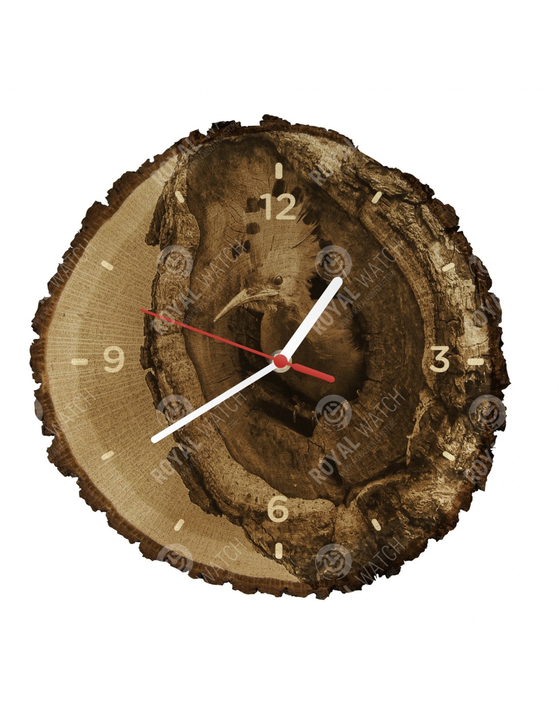 Zegar wykonany jest z dębowego przekroju o średnicy 30 cm (odchylenie 25% wielkości) i grubości 1 cm. Ponieważ zegar jest wykonany z czysto naturalnego materiału, możliwe jest, że zegar ma pęknięcia lub opadłą korę na obwodzie (maks. Do 30%).
