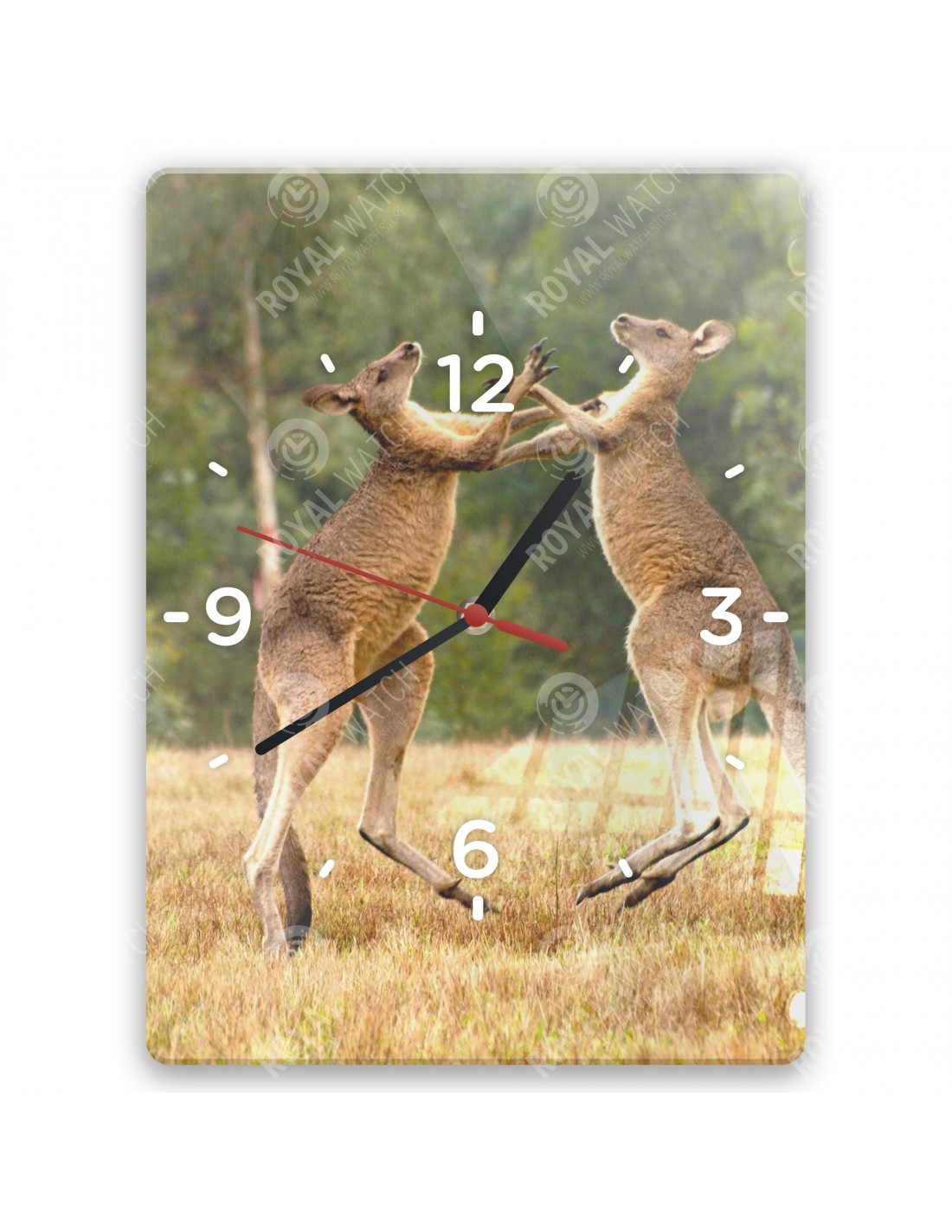 Zegar wykonany z akrylu ma następujące wymiary: kwadrat 28 x 28 cm, okrąg o średnicy 30 cm, prostokąt 20 x 30 cm i grubość 6 mm.