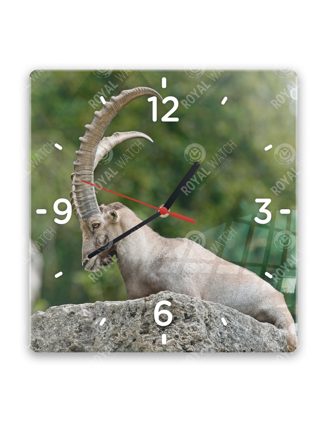 Zegar wykonany z akrylu ma następujące wymiary: kwadrat 28 x 28 cm, okrąg o średnicy 30 cm, prostokąt 20 x 30 cm i grubość 6 mm.