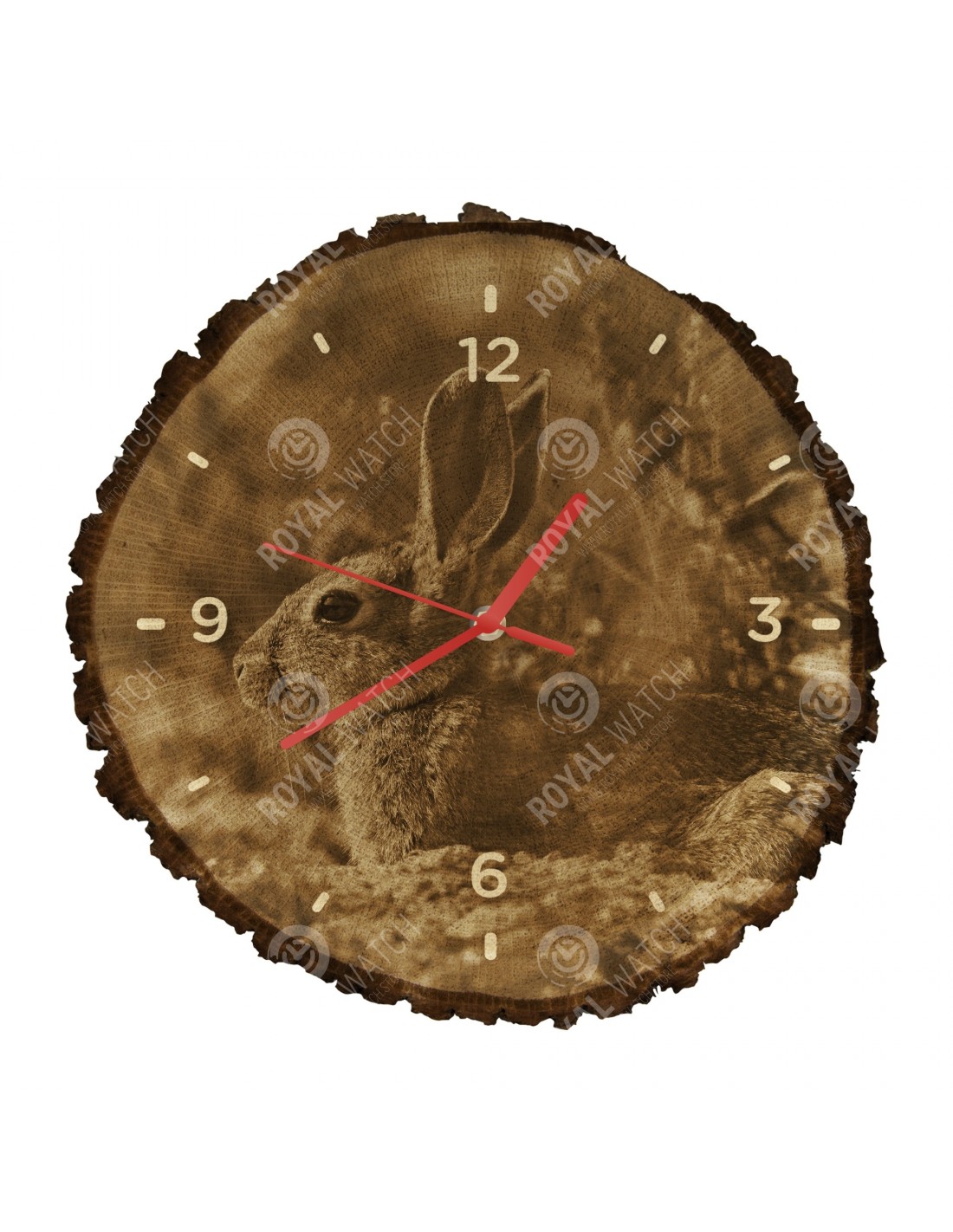 Zegar wykonany jest z dębowego przekroju o średnicy 30 cm (odchylenie 25% wielkości) i grubości 1 cm. Ponieważ zegar jest wykonany z czysto naturalnego materiału, możliwe jest, że zegar ma pęknięcia lub opadłą korę na obwodzie (maks. Do 30%).