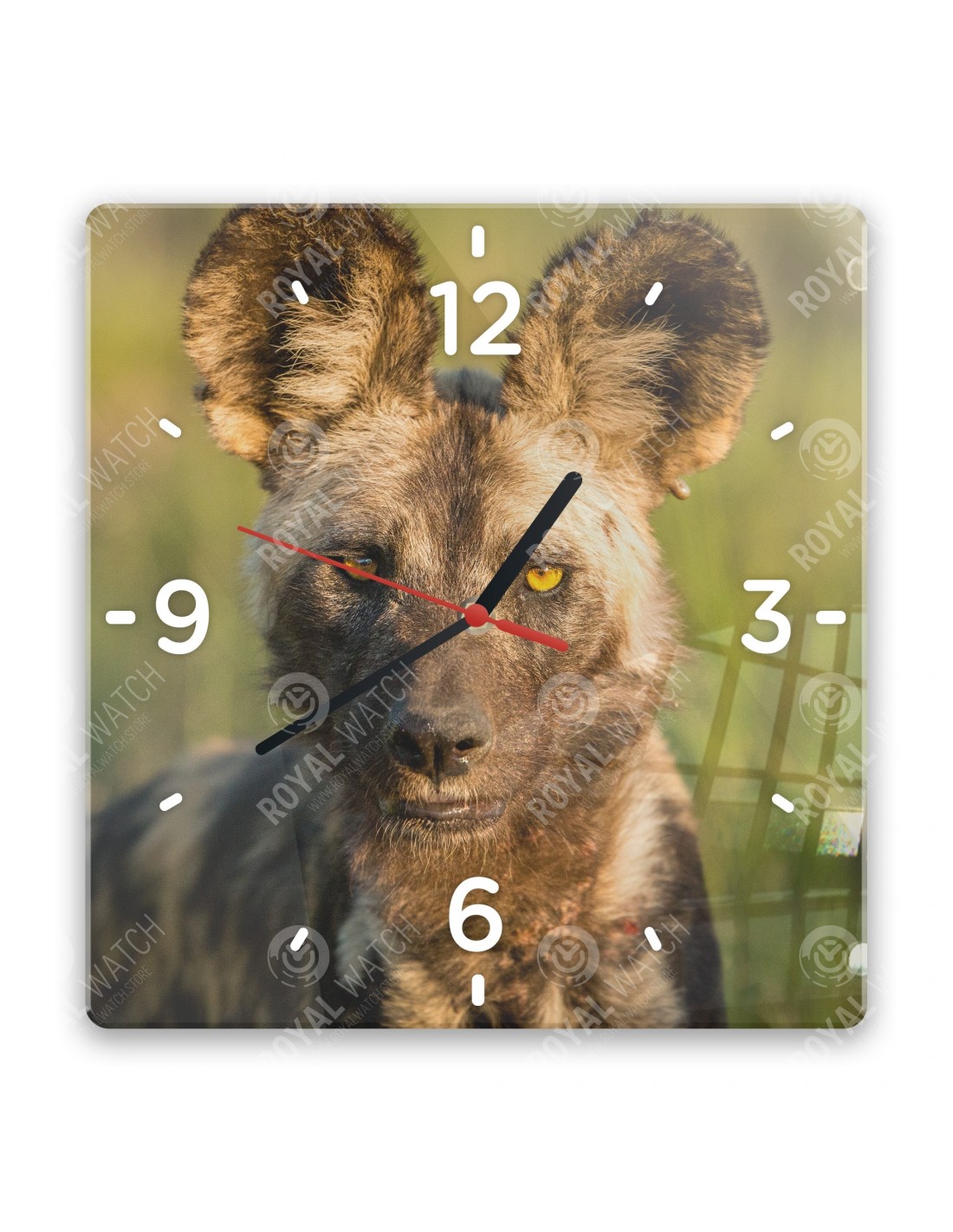 Zegar wykonany z akrylu ma następujące wymiary: kwadrat 28 x 28 cm, okrąg o średnicy 30 cm, prostokąt 20 x 30 cm i grubość 6 mm.