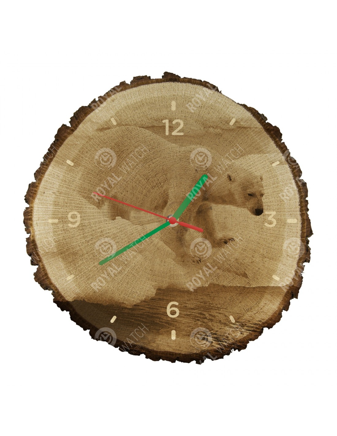 Zegar wykonany jest z dębowego przekroju o średnicy 30 cm (odchylenie 25% wielkości) i grubości 1 cm. Ponieważ zegar jest wykonany z czysto naturalnego materiału, możliwe jest, że zegar ma pęknięcia lub opadłą korę na obwodzie (maks. Do 30%).