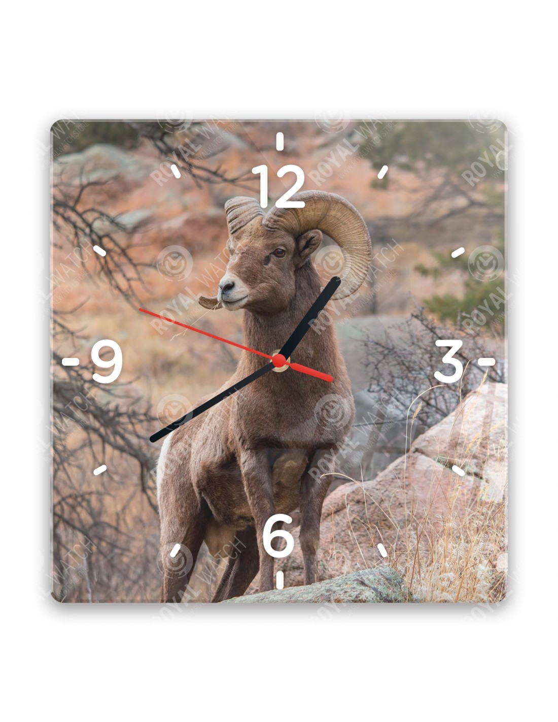 Zegar wykonany z akrylu ma następujące wymiary: kwadrat 28 x 28 cm, okrąg o średnicy 30 cm, prostokąt 20 x 30 cm i grubość 6 mm.