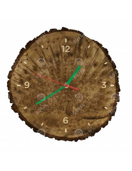 Zegar wykonany jest z dębowego przekroju o średnicy 30 cm (odchylenie 25% wielkości) i grubości 1 cm. Ponieważ zegar jest wykonany z czysto naturalnego materiału, możliwe jest, że zegar ma pęknięcia lub opadłą korę na obwodzie (maks. Do 30%).